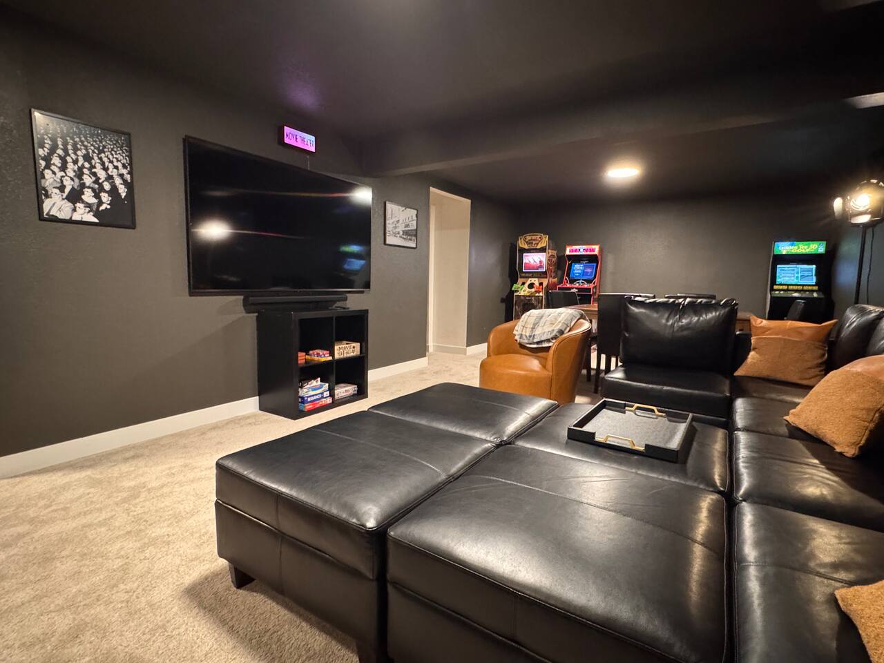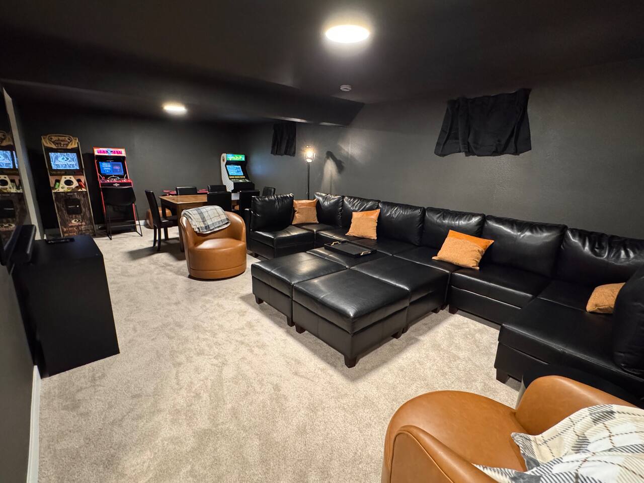 Indulge in a luxury retreat designed for unforgettable gatherings. Haus Vango offers 6 beautifully appointed bedrooms and an expansive open-concept main floor that effortlessly blends style, comfort, and sophistication. The chef-inspired kitchen, grand dining table, and spacious living room create the perfect setting for shared meals, celebration, and connection. Venture downstairs to your private entertainment sanctuary featuring a full movie theater lounge and an arcade game room—ideal for kids, adults, and every age in between. Step outside and discover multiple outdoor living spaces crafted for relaxation and conversation. Enjoy al fresco dining, cozy seating under warm bistro lights, and a serene backdrop perfect for morning coffee or evening cocktails. To top it all off, unwind in the luxurious hot tub, where soothing jets and Colorado’s crisp air create the ultimate spa-like experience. Whether you're hosting family, friends, or a special getaway, Haus Vango delivers a high-end, memory-filled stay from the moment you arrive.